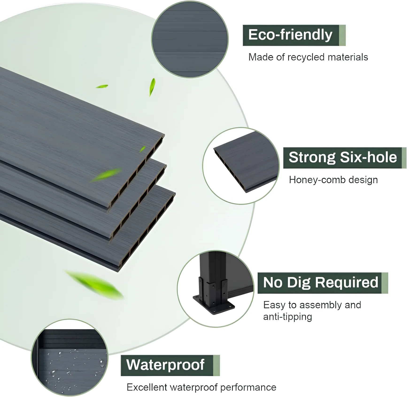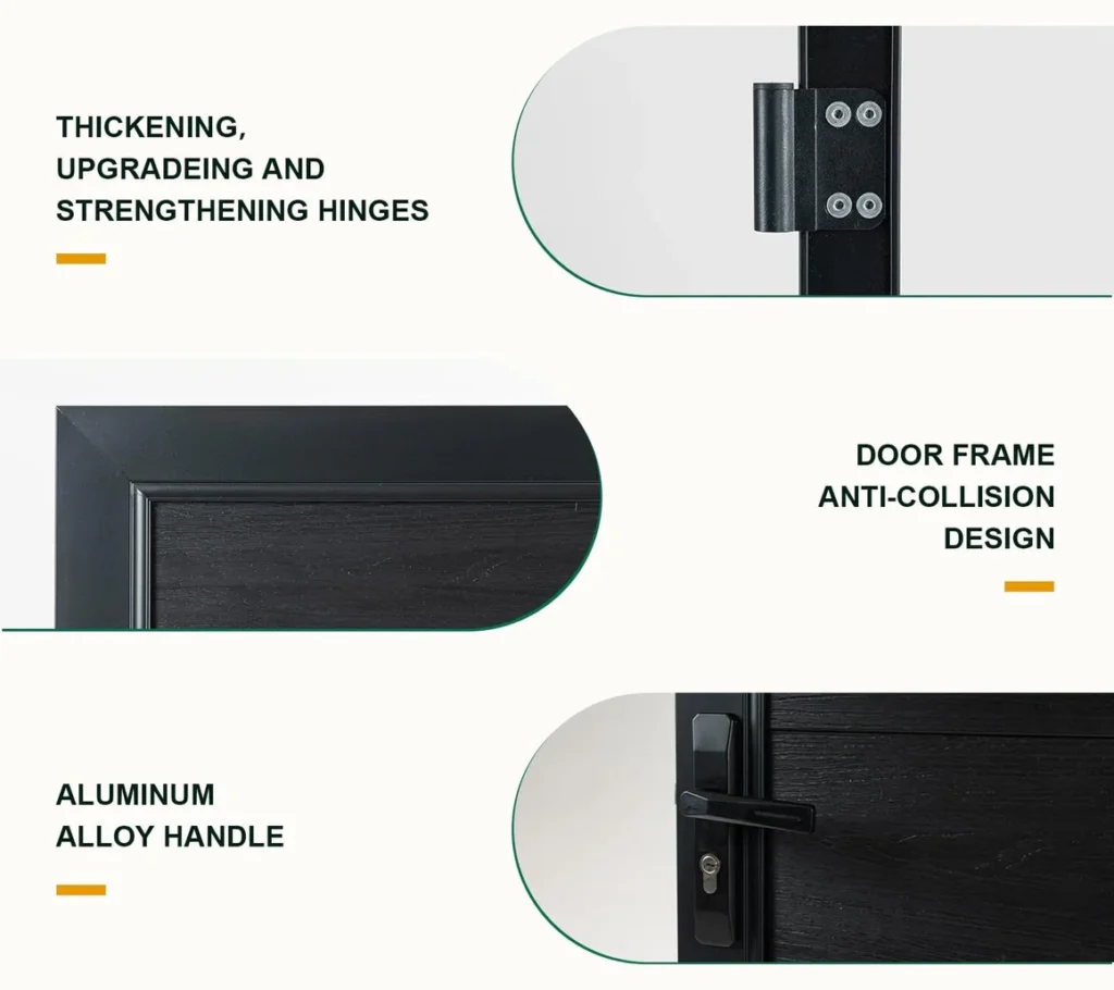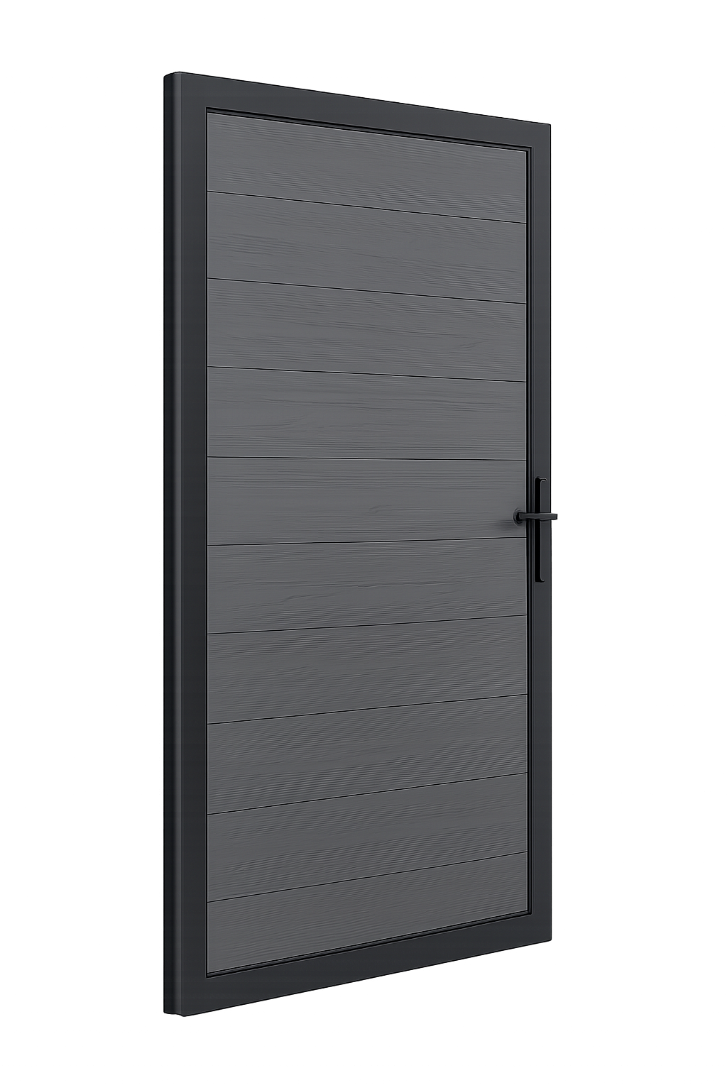 This composite fence gate kit is engineered with premium hardware for long-term performance. The thickened, reinforced hinges provide smooth, stable opening and closing, while the anti-collision door frame design helps prevent impact damage and keeps the gate aligned over time. Finished with a robust aluminum-alloy handle and lock set, the gate delivers reliable security, everyday convenience, and a sleek modern look for any outdoor entrance.
